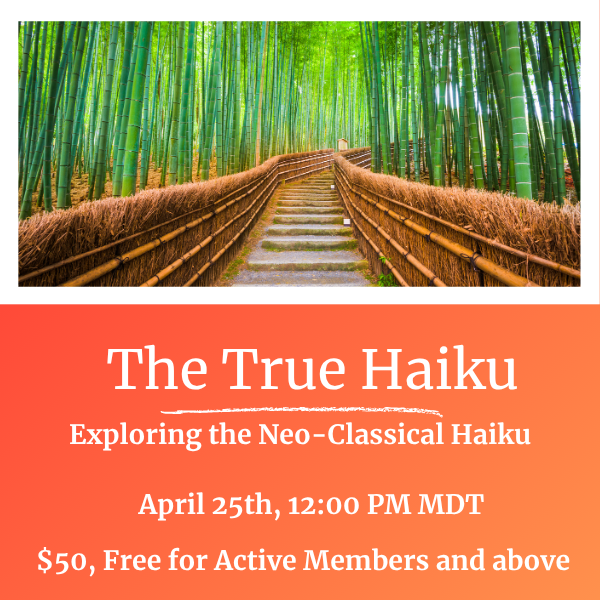 In this workshop, we will explore this anglicized form. We will find ways to bring all our skills to bear on the brief and beautiful haiku, adding our own personal traditions to this utterly different set of poetics that we will make our own while respecting its history. We will use not just image but the music of the English poem with assonance and consonance and alliteration. We can, if we want, use meter. We will not try to be Japanese. We will become English-language poets pouring ourselves into a small, exquisite porcelain cup.
